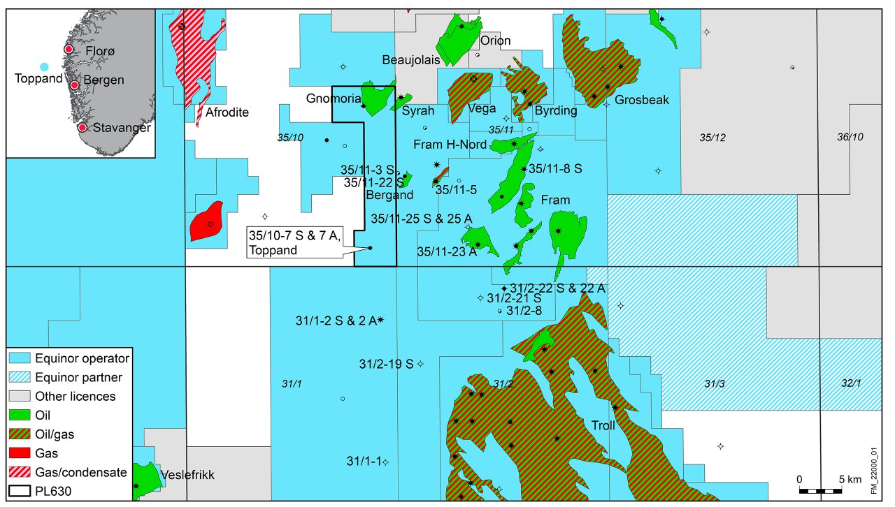 Several discoveries in the Troll and Fram area during the past few years demonstrate that even mature areas can be revitalised based on new information and modern exploration technology. Toppand is the fifth discovery in the area, and proven resources might exceed 300 million barrels of oil equivalent.